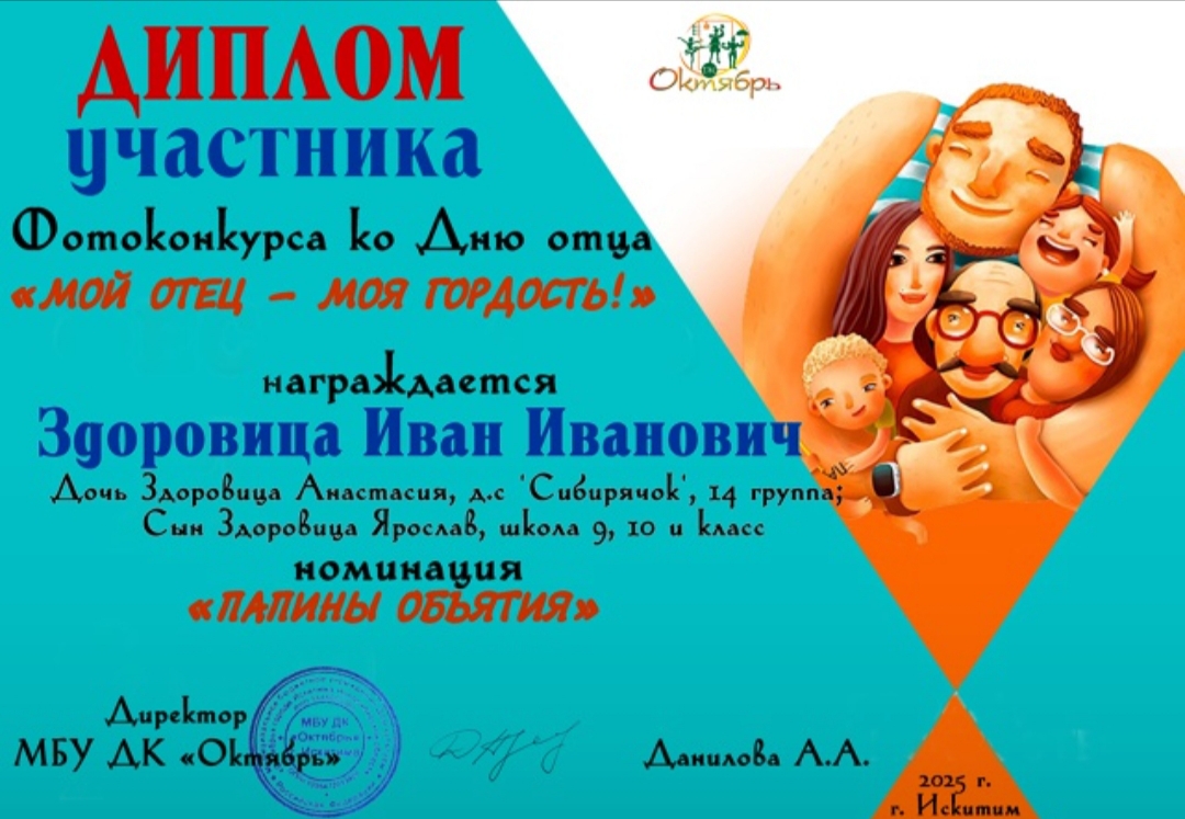 Здоровица Иван Иванович, участник конкурса, номинация "Папины объятия"